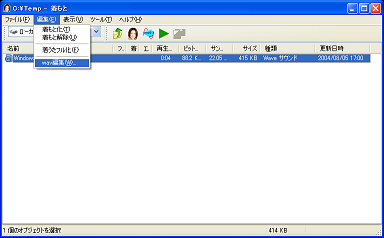WAVファイルを選択して,[編集(E)]-[.wav編集(W)...],もしくは,ハサミのキャラクターのボタンを押します。