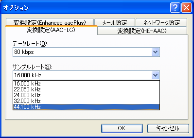 サンプルレートを上げると,変換後の3gpファイルのサイズが大きくなります。曲の長さによっては,500KB(900iシリーズの場合は300KB)におさまらなくなって着信音に設定できなくなりますので,ご注意ください。
